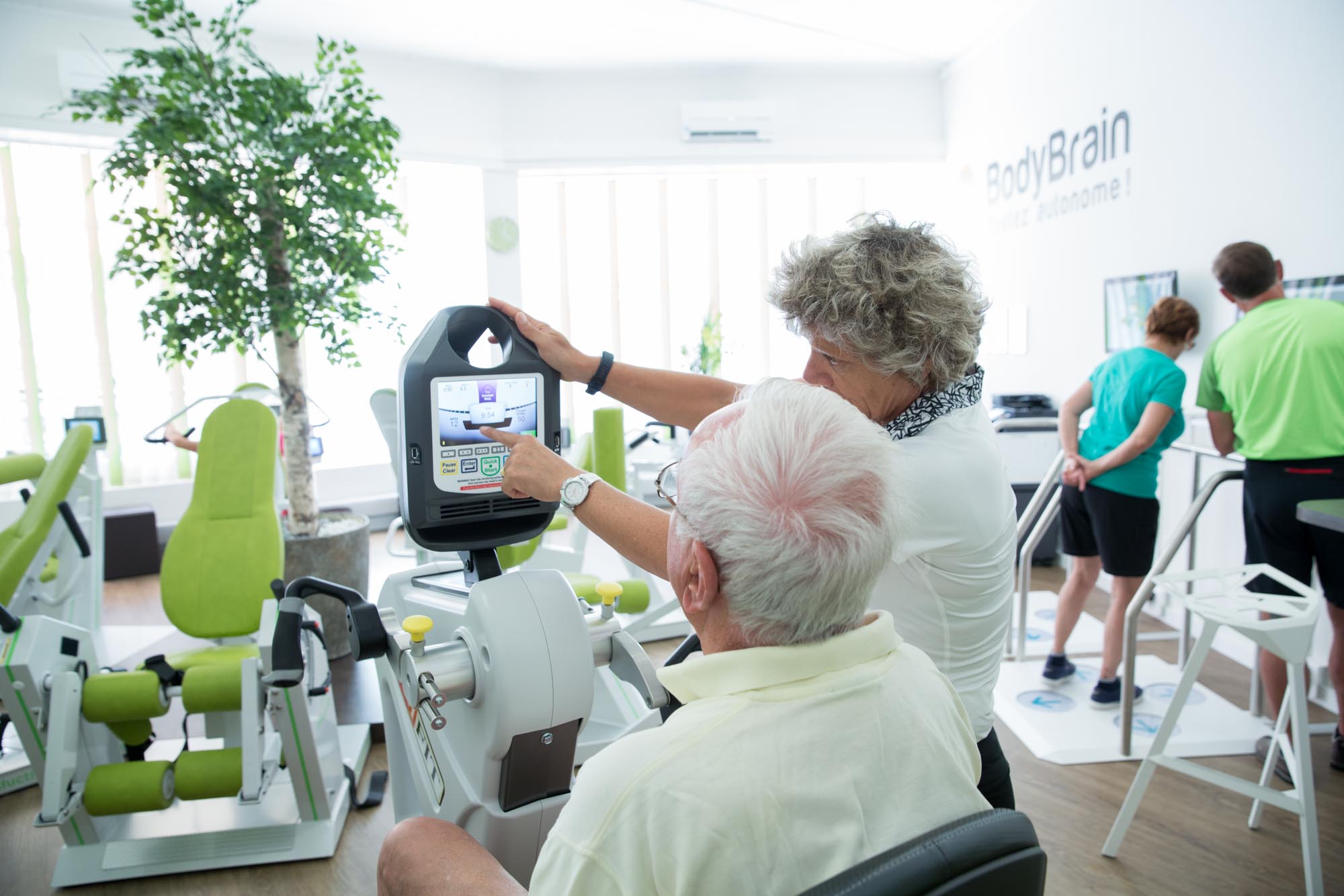 Les équipements modernes de BodyBrain, spécialement adaptés pour les seniors, permettent un entraînement sécurisé et efficace. Ces machines offrent une résistance très légère et ajustable qui s’adapte aux capacités individuelles, favorisant un renforcement musculaire progressif tout en ménageant vos articulations. L’utilisation de machines à résistance variable aide à cibler différents groupes musculaires, augmentant ainsi la masse musculaire et la densité osseuse. Grâce au bracelet connecté, nous pouvons visualiser la progression de votre entraînement après chaque utilisation.